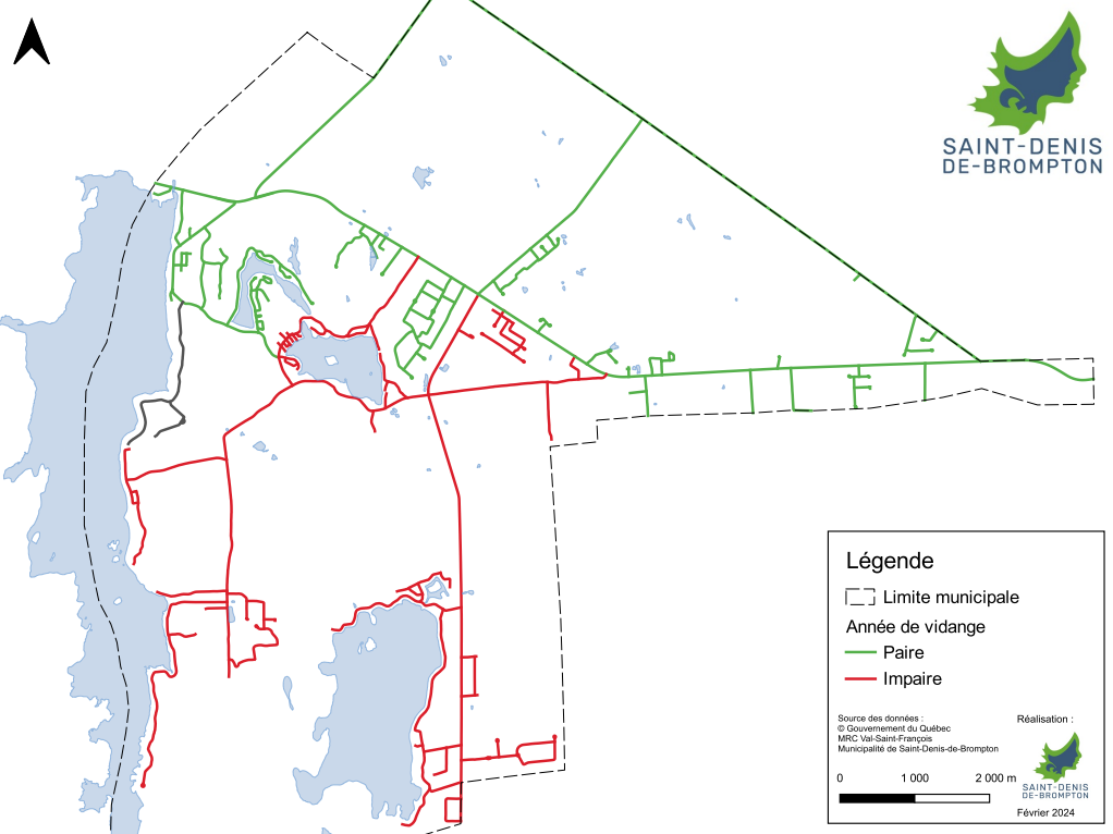 La Municipalité procède à la vidange de la moitié des fosses septiques sur son territoire à chaque année. Cette année, ce sont les rues et les secteurs en rouge sur cette carte qui sont concernés par cette opération.