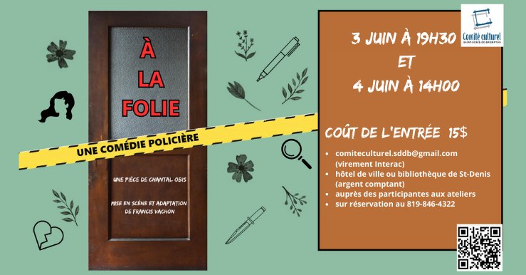 Rebondissements et rires assurés à la comédie policière "À la folie", les 3 et 4 juin à 14 h, au sous-sol de l'église.
