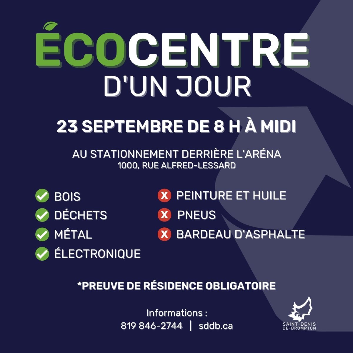 Consultez la liste des matières acceptées et refusées à l'écocentre d'un jour en cliquant ici.