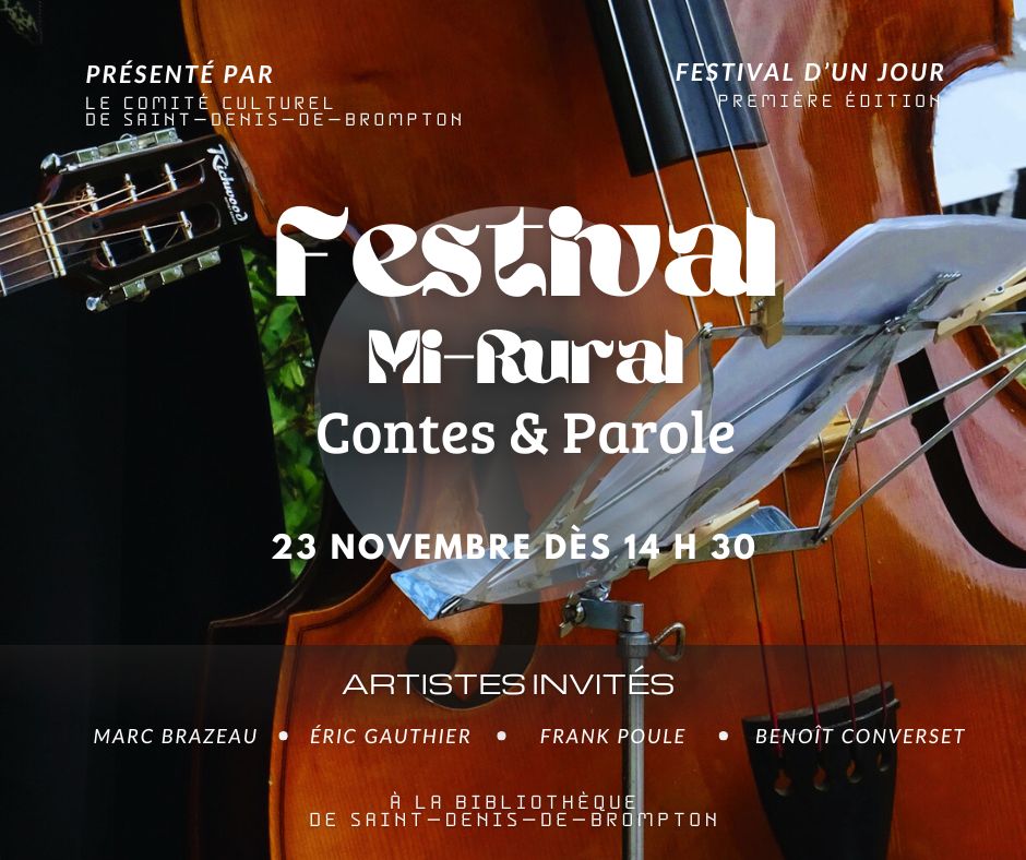 Nous vous invitons à participer au tout nouveau festival d'un jour, présenté par le Comité culturel Saint Denis de Brompton, le 23 novembre, à la bibliothèque municipale.