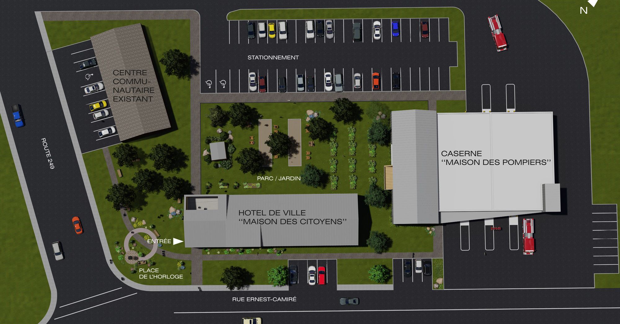 Le projet de modernisation consiste ainsi à saisir l'opportunité du remplacement nécessaire de la caserne de pompiers et de l'hôtel de ville pour aménager un complexe multifonctionnel, avec des salles modulables permettant de répondre aux besoins de l'organisation municipale et aux attentes grandissantes du milieu. Le projet comprend également un réaménagement du centre communautaire, adjacent au futur complexe, de manière à accroître l'offre globale en locaux sécuritaires et adaptés pour la conduite d'activités et de services à la population.